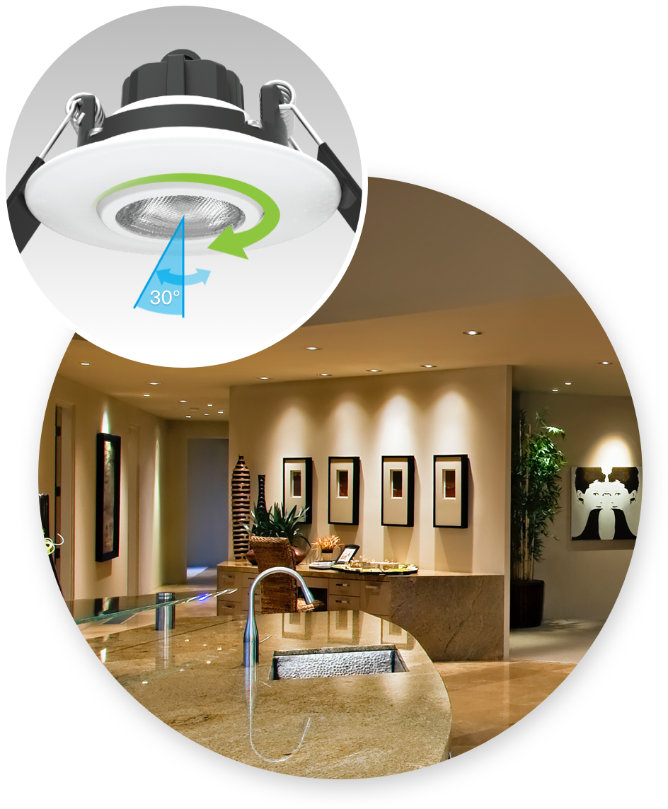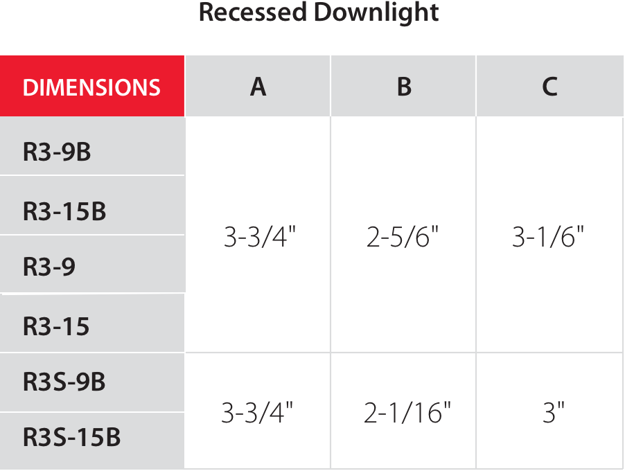 Available in 2”, 3” and 4” diameters, and in five color temperatures, all downlights deliver 90+ CRI for accurate color rendering and are dimmable to 10% with most standard TRIAC dimmers (120V). 2" model has 20° beam angle and others are 38°.