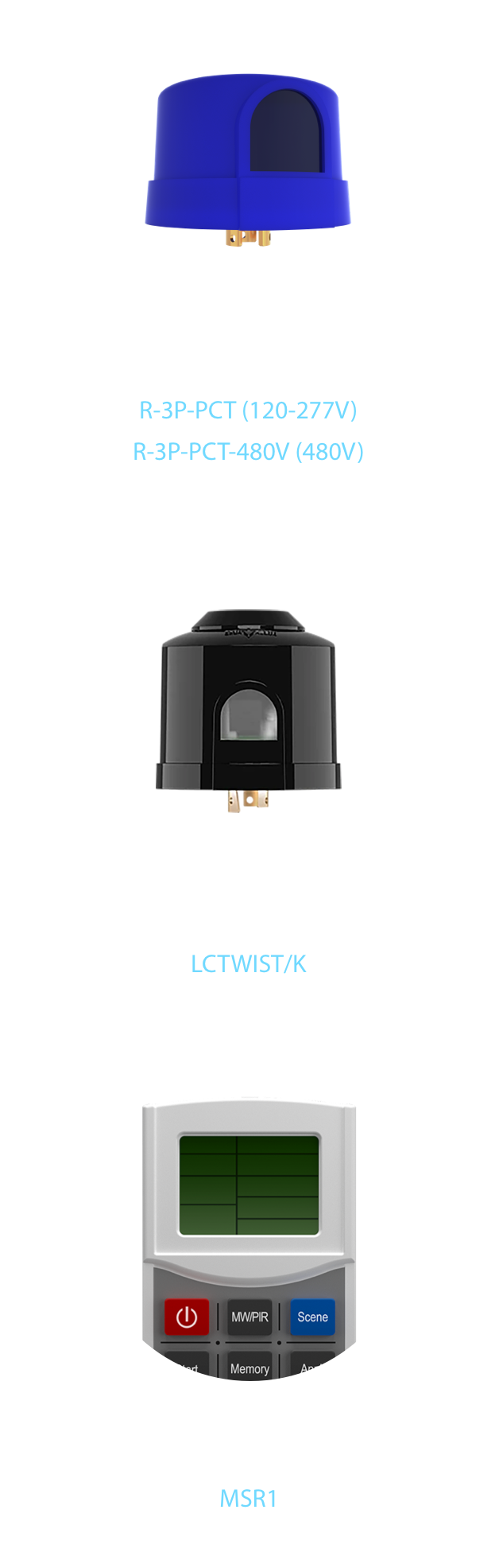 All A22 models come standard with a NEMA 7-pin receptacle but can also be ordered with an integrated sensor to help qualify for additional utility rebates. Standard and Lightcloud twistlock photocells can also be purchased as accessories.