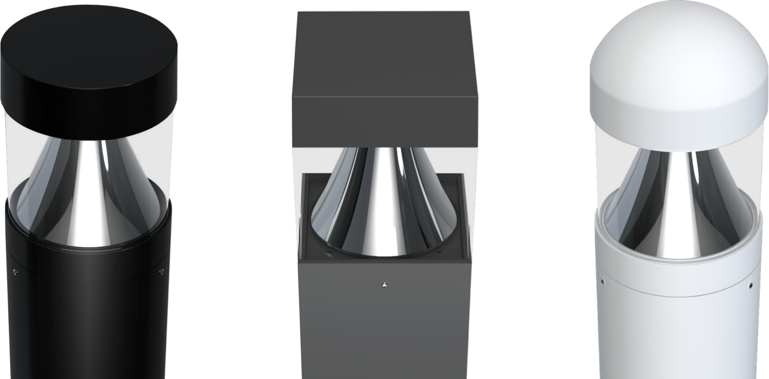 The B17 family is available in various shapes and colors to suit your aesthetic. Choose from square or round, with either flat or domed top available on the round models. All shapes are available in either black, bronze, or white finishes.