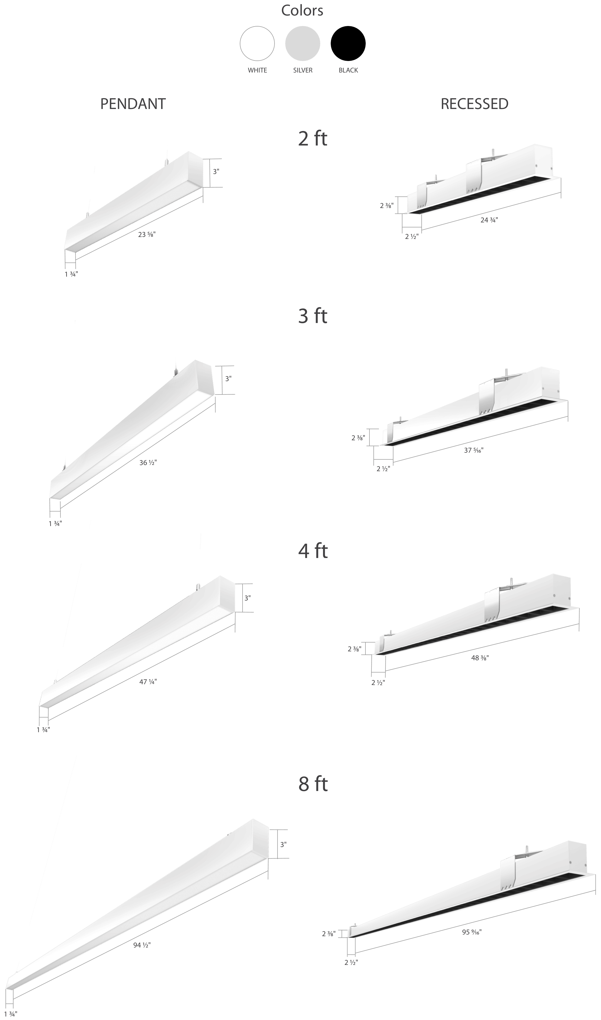 Available in standard 2, 3, 4, and 8 ft lengths, the pendant BOA comes in matte black, white, and silver finishes.