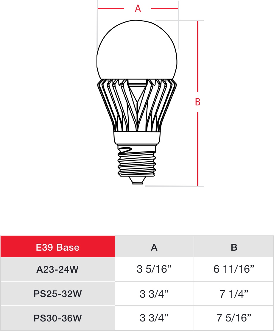 These A-Shape lamps are perfect for high-output applications that require omnidirectional light output. These bulbs can replace both high-output incandescent or HID lamps available in models up to 5,000 lumen!