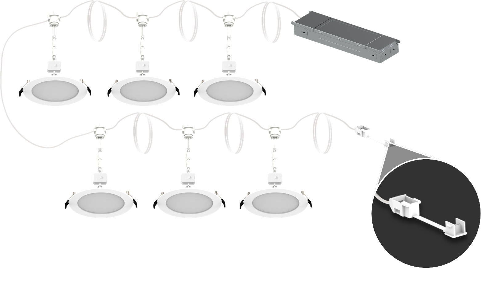 With 6 canless, quick-connect DAISY wafers controlled by only one driver, you'll save on things like housings, wire, clamps, wire nuts, and most importantly, installation time.
