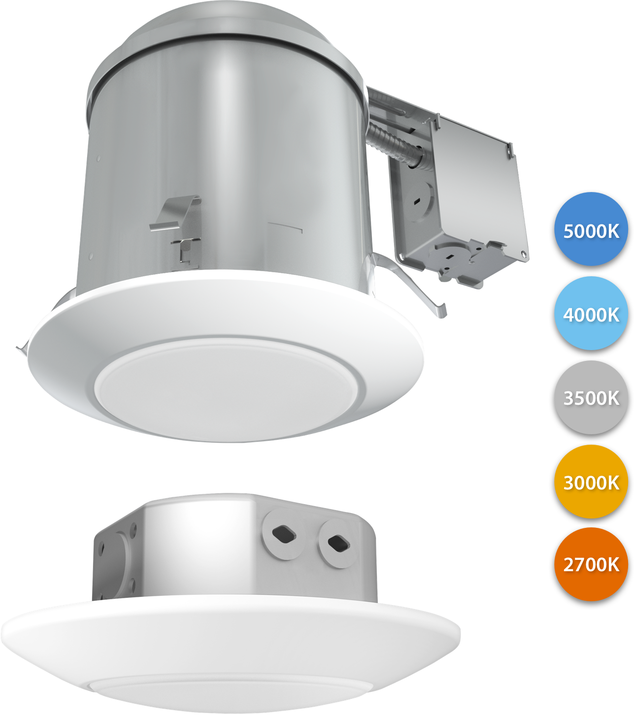 These surface mounts are designed to be an ideal lighting solution for both retrofit and new construction applications, installing into recessed cans if you’ve got ‘em, or standard junction boxes if you don’t! Models are offered in both 4” (12W) and 6” (16W) and in five color temperatures.