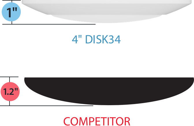 This super-low-profile, backlit LED surface mount looks good just about anywhere. At only 1” in depth, the DISK34 bests the competition with its unobtrusive, sleek design.