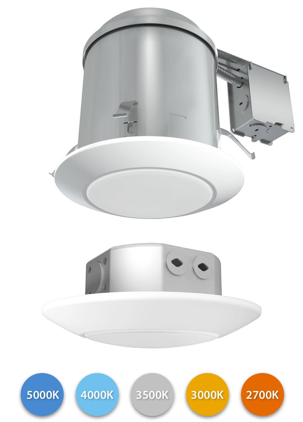 These surface mounts are designed to be an ideal lighting solution for both retrofit and new construction applications, installing into recessed cans if you’ve got ‘em, or standard junction boxes if you don’t! Models are offered in both 4” (12W) and 6” (16W) and in five color temperatures.