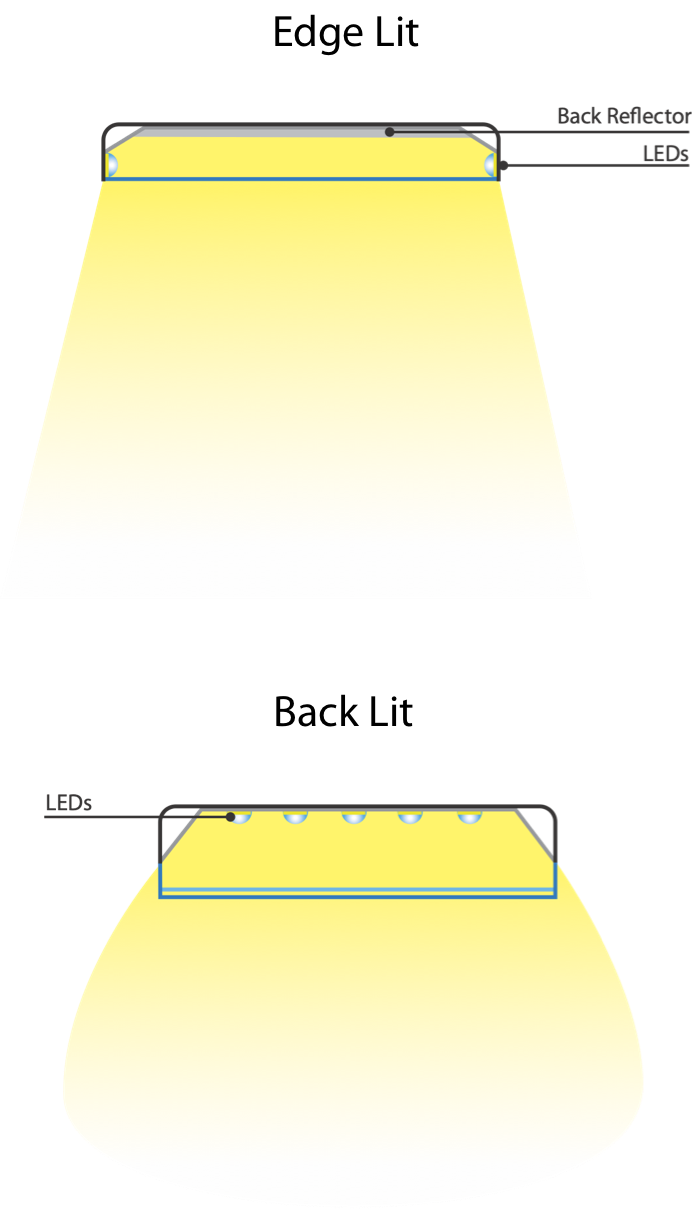This surface mount is available with two types of distribution. Back-lit models deliver light in a vertical pattern, putting more light directly on the work surface, while edge-lit models disperse a wider pattern that reduces glare.