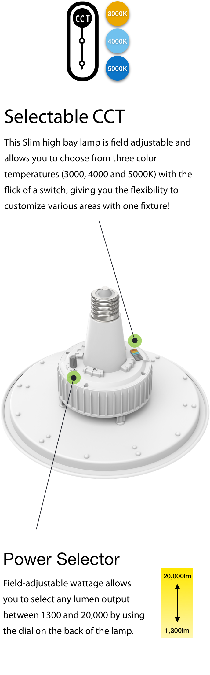 Slim Highbays offer up to 20,000 lumens for outstanding light in high-ceiling applications.