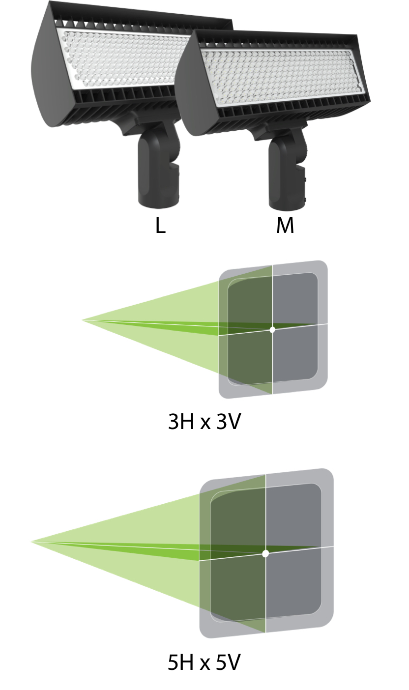 Standard models come with either a 6H x 6V (XS & S) or 7H x 6V (M & L) distribution, but the medium and large models are now also available with either 3H x 3V or 5H x 5V NEMA types, giving you added flexibility with your outdoor applications!