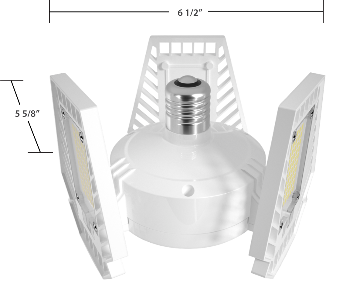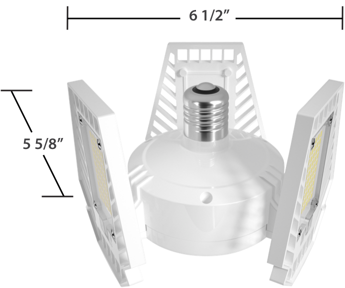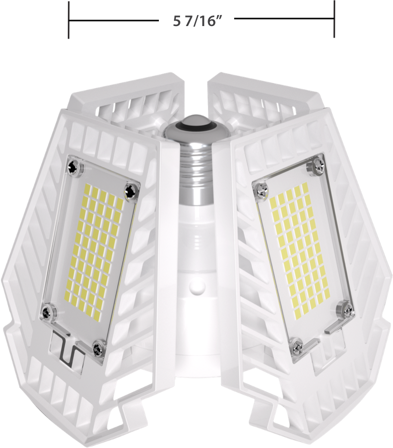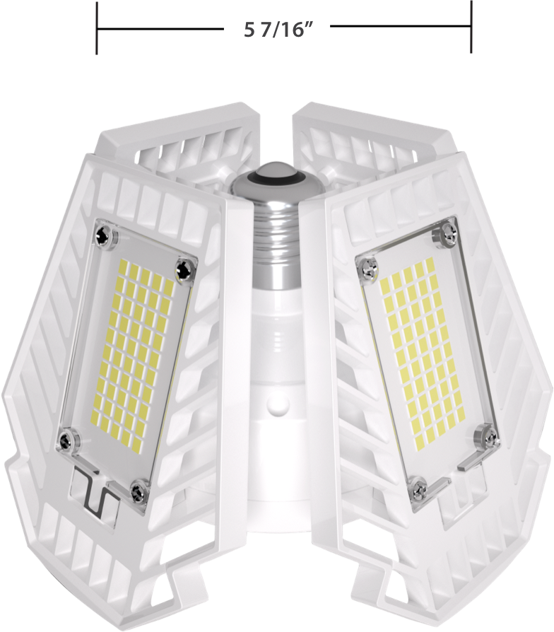 The garage light is designed with an E26 Medium Base that screws directly into a light socket, so no tools or hardware are required! This is plug-and-play at its best, with 8000 or 10,000 lumens at a bright 5000K to make sure your garage is well lit.