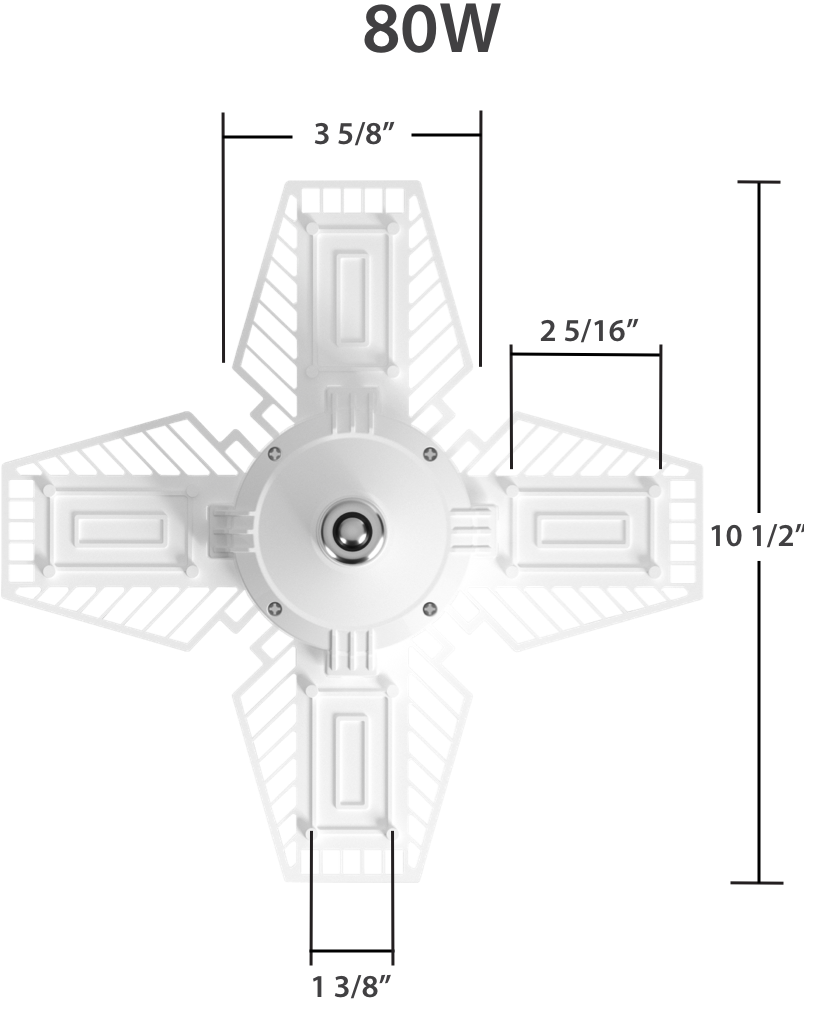 The adjustable fins allow you to customize where you direct the light in your space. Each panel can be angled from 0° to 90° as needed and can be independently fixed at different angles, for a maximum of 360° coverage.