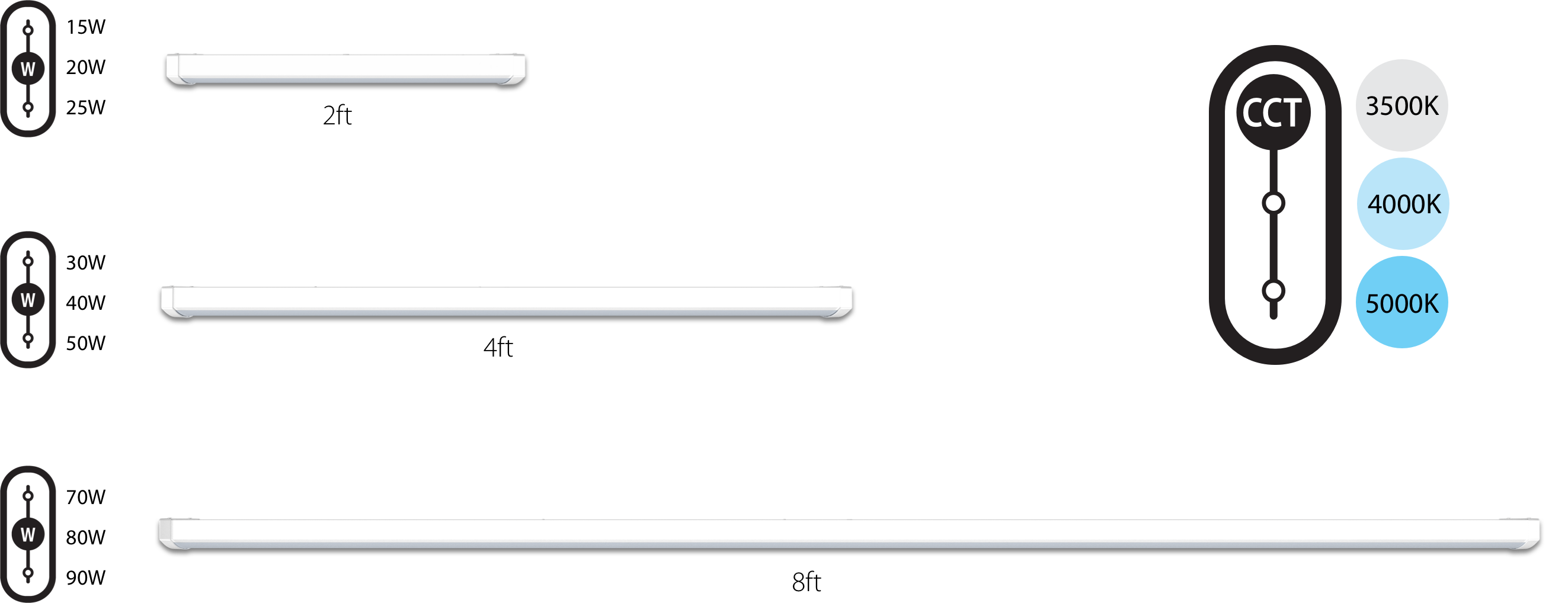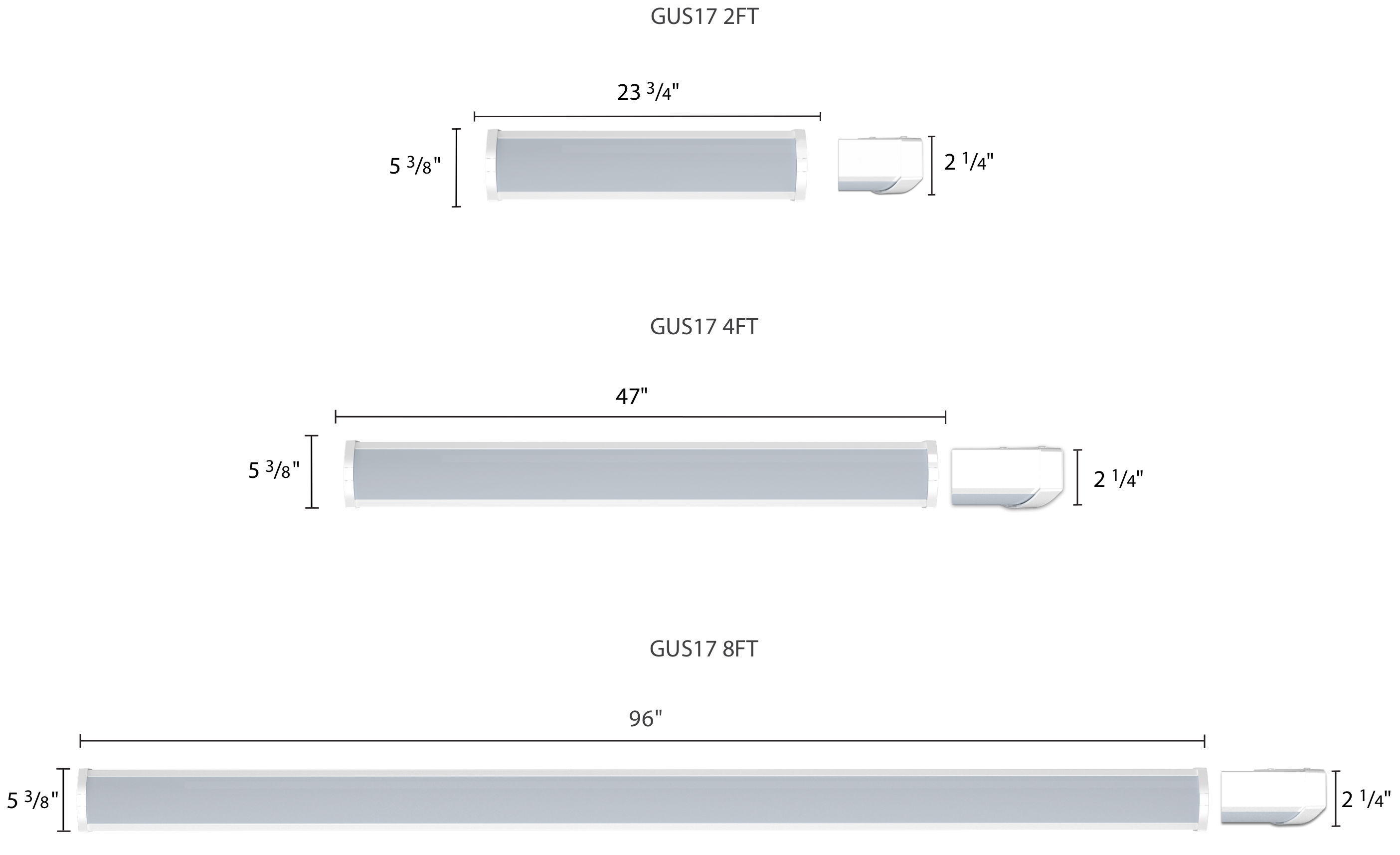 GUS17 comes with 3 selectable color temperatures and power outputs, in 2ft, 4ft or 8ft models, for maximum versatility… all with an incredible price tag.
