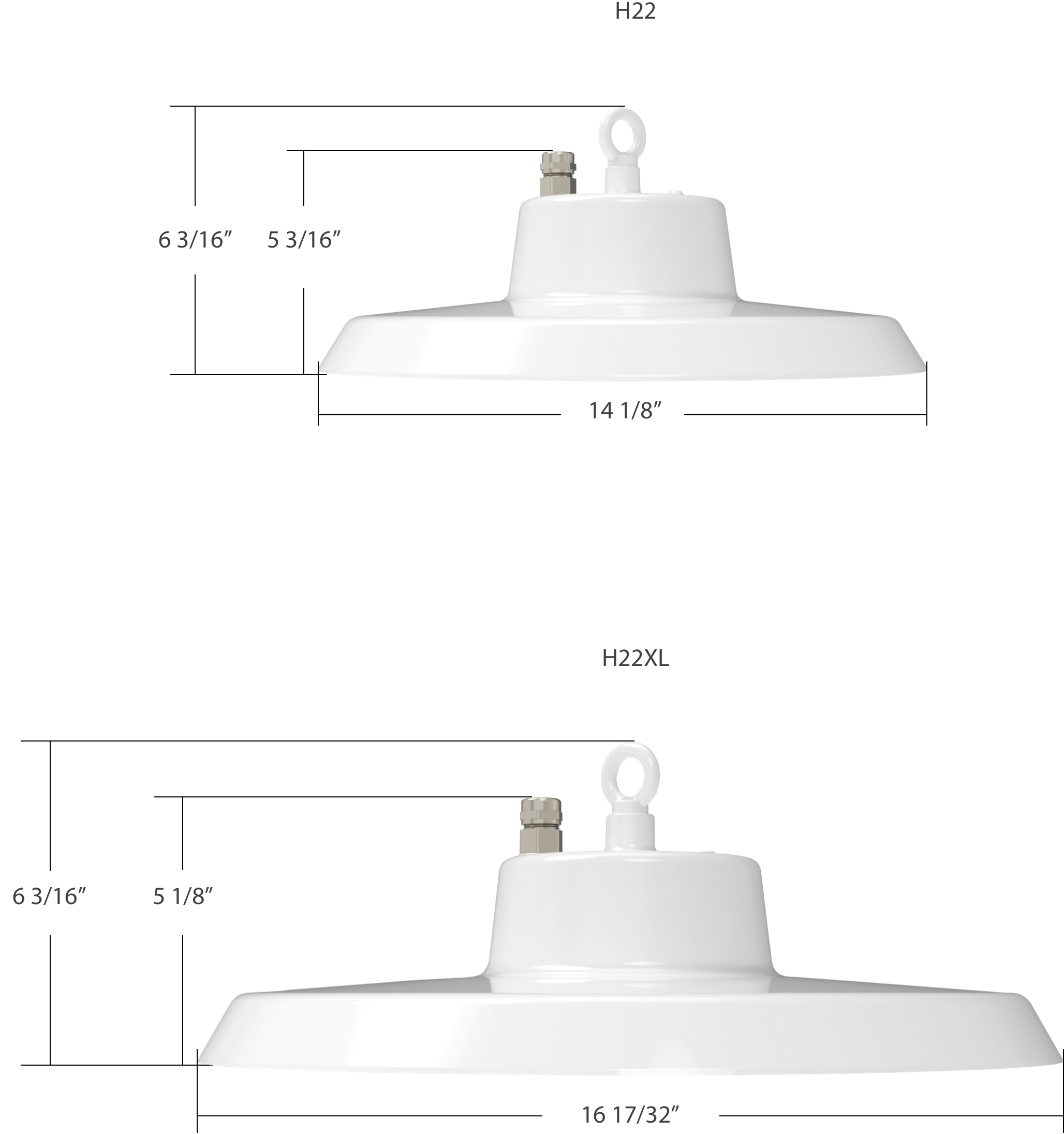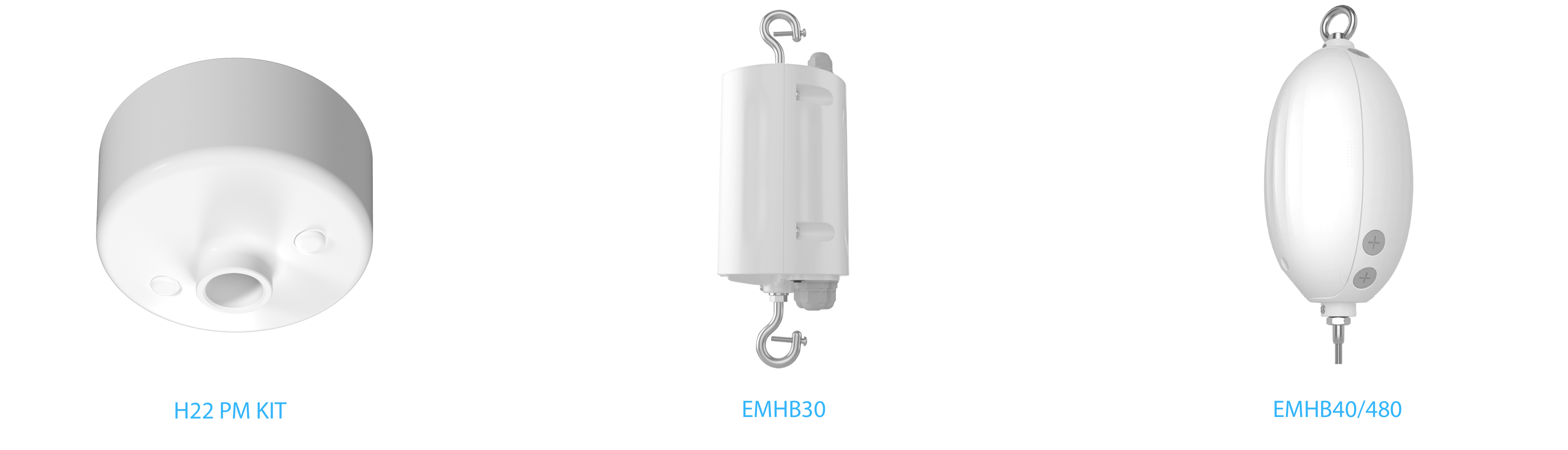H22 features a standard hook mount for suspended installation but a pendant mount accessory kit is available for added installation versatility. An emergency battery backup solution is also offered.