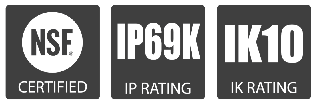 The H22 is engineered to excel in the most demanding environments, with NSF certification for food processing facilities and IP69K and IK10 ratings for superior protection. Its die-cast aluminum construction and UV-stabilized polycarbonate lens stand up to rigorous washdown conditions up to 1500 PSI. With operating temperatures up to 122°F, the H22 is built for demanding conditions.