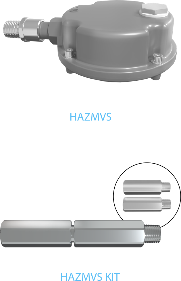 Available as a separate accessory, the HAZMVS is a microwave sensor engineered for hazardous location use. A second accessory kit is available with two mounting extensions.