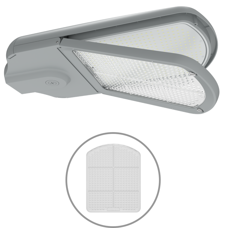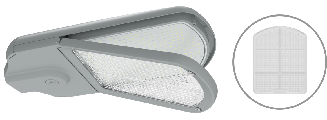 Easily adapt to roadway requirements with field-swappable optics that let you quickly switch between Type II, III, and IV distributions. Simply flip down the housing and change the lens! Perfect for Utilities with multiple distribution requirements.