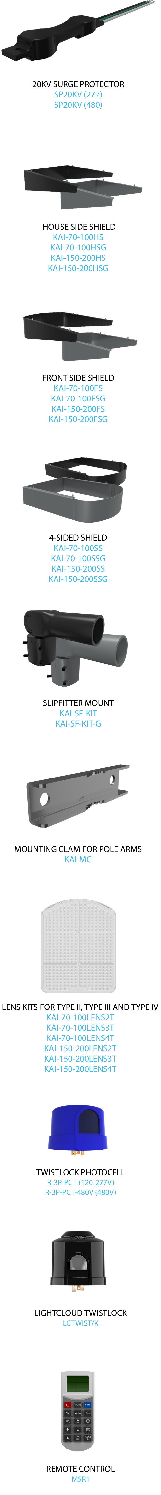 Ready to add intelligence to your roadway lighting? The KAI is available with Lightcloud Blue sensor capability (passive infrared or microwave) that integrates seamlessly with our wireless lighting control system. Its 7-pin receptacle also makes it compatible with standard twistlock photocells as well as our smart Lightcloud version, making KAI a future-proof investment that can grow with your smart city initiatives.