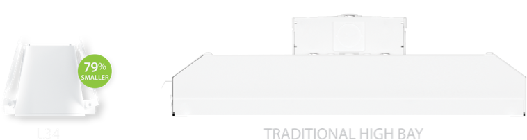 The L34 uses a far smaller box than standard linear high bays which cuts down use of material, consumes less energy to manufacture, and demands far less fuel to transport, drastically reducing greenhouse gases.