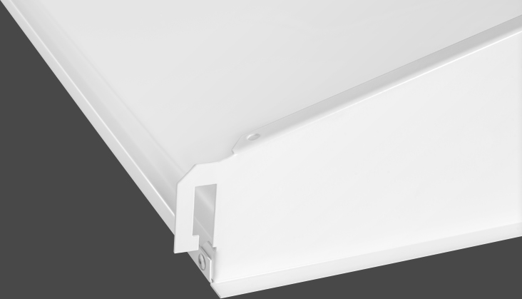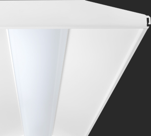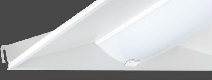 Standard integral clips secure troffer to T-bars and don't get lost during installation.
