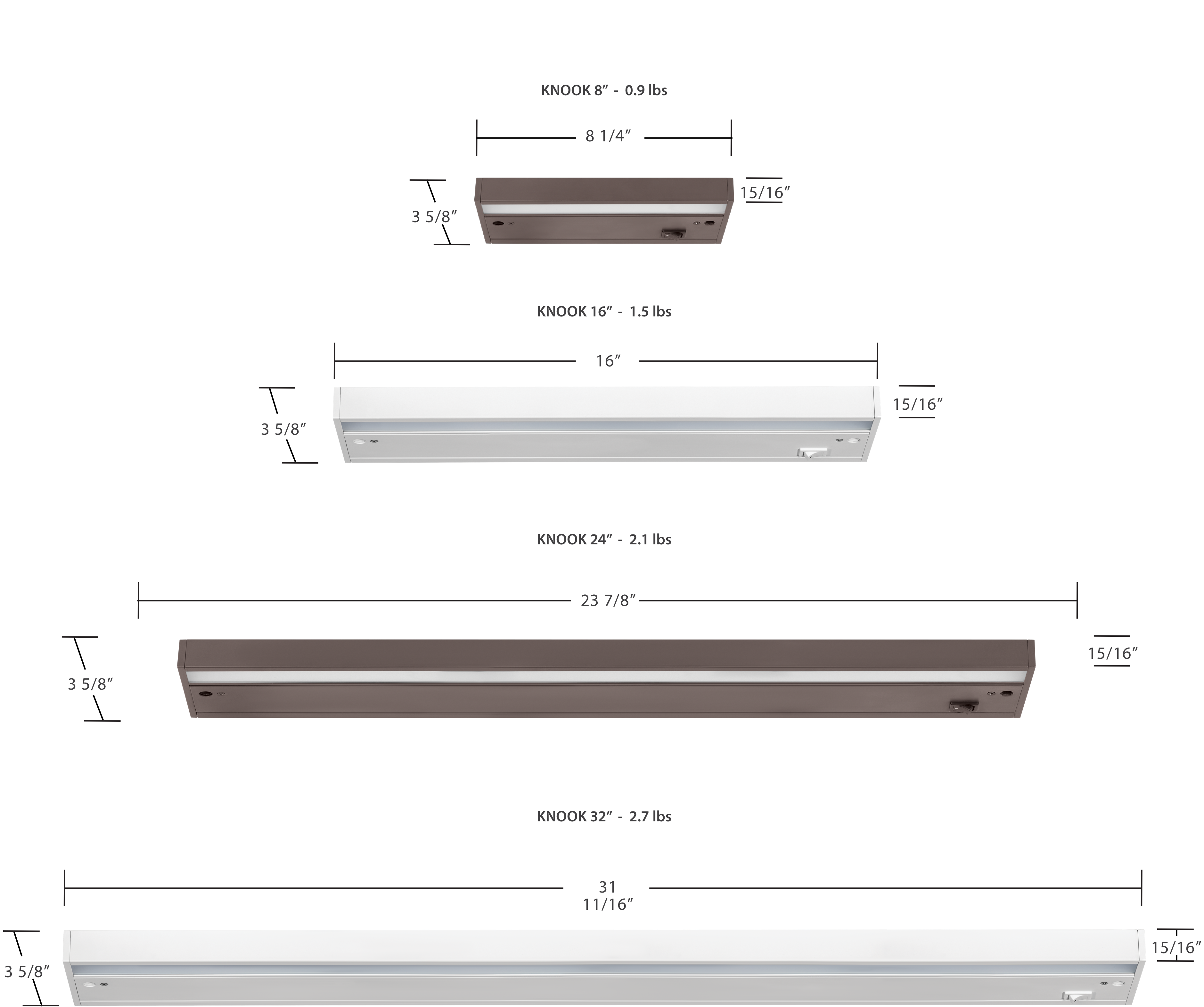 KNOOK provides clean, uniform illumination across the length of the fixture, on walls and over countertops.