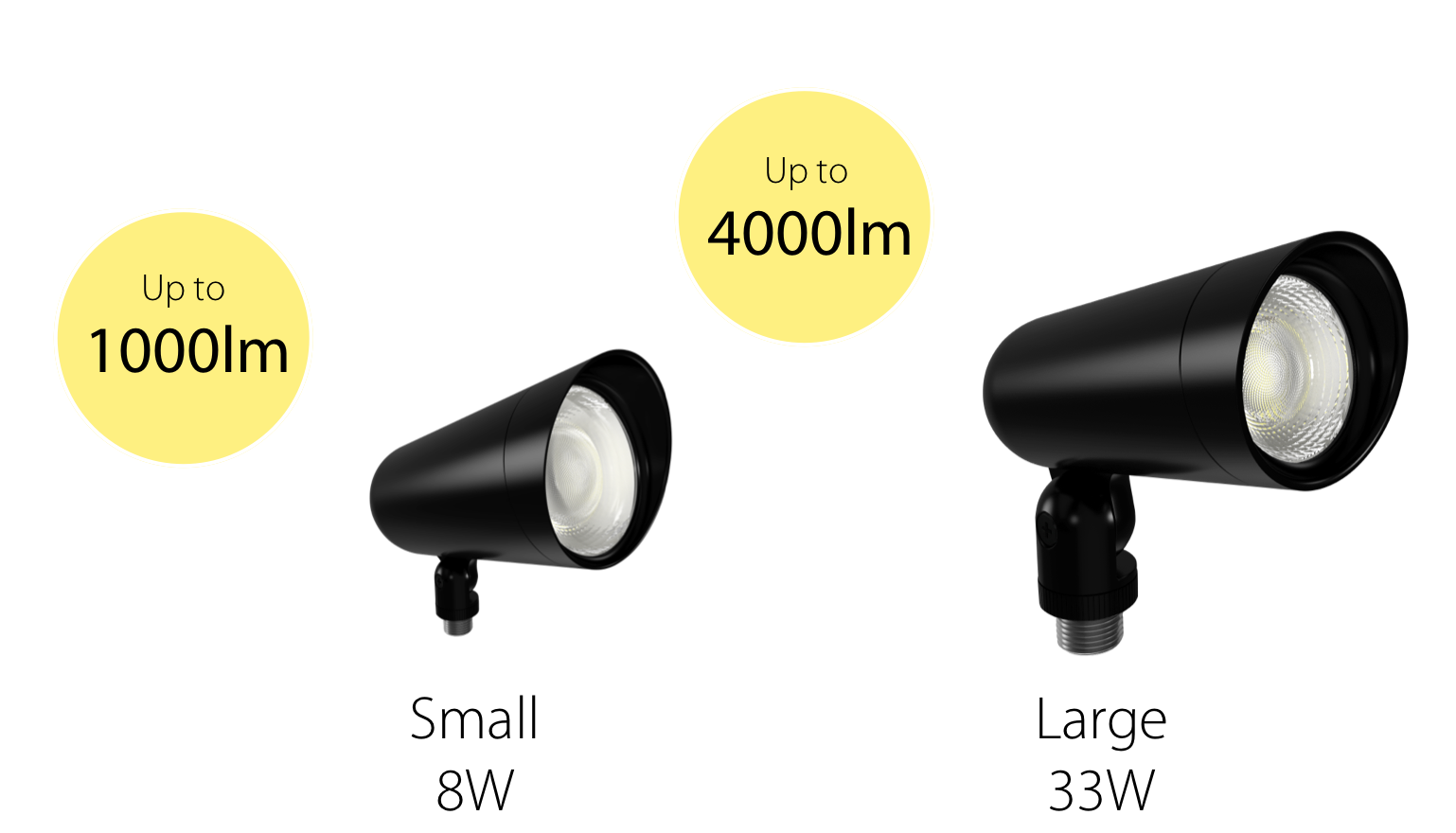 Available in small (8W) and large (33W) models, the LF34 delivers optimal illumination for any landscape feature. The small size provides up to 1000 lumens while the large delivers up to 4000 lumens, giving you the right output for all your 120V residential projects.