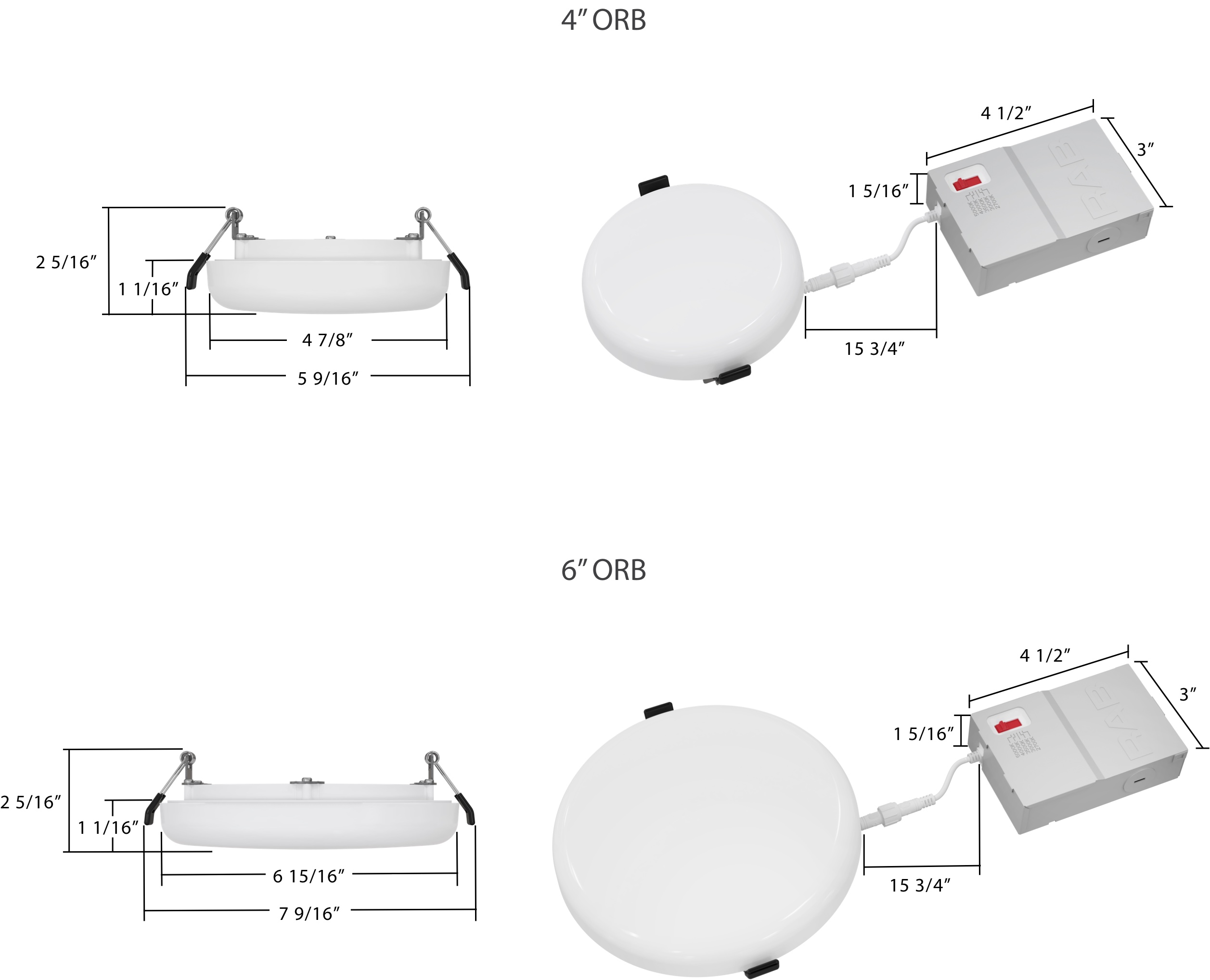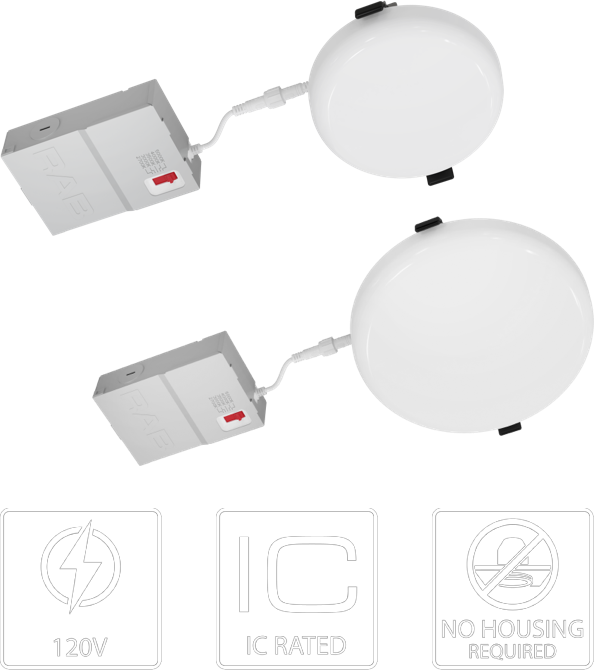 The ORB is flexible enough for retrofit, remodeling, or new construction applications and is IC rated for direct contact with insulation—no housing or j-box required! Just cut your hole, wire the driver, and secure the ORB with the torsion springs.