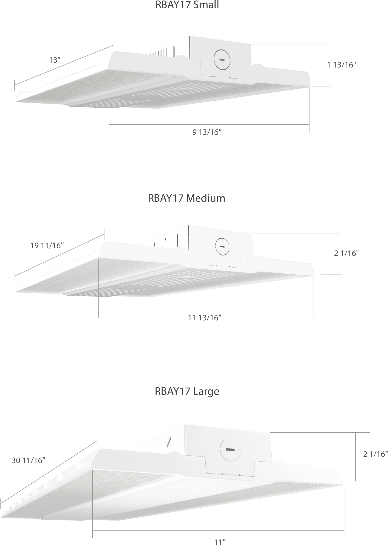 RBAY17 is available in three sizes and each model comes with three selectable wattages and color temperatures, allowing you to customize settings onsite for super-flexible installations. All sizes are offered with an optional battery backup.