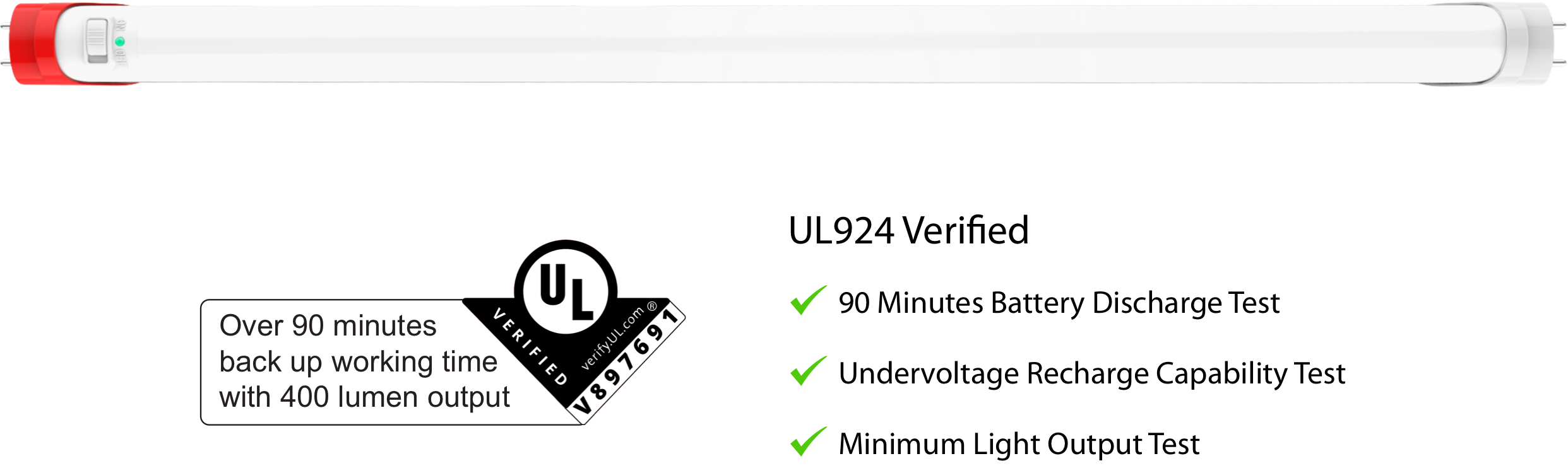 RAB's T10EM tube is designed and engineered as an all-in-one, general purpose lighting and battery-powered backup LED solution. The tube can be switched on as a normal lamp, providing high lumen efficacy and supporting on/off switching operation. The integrated batteries provide a minimum of 90 minutes of light.