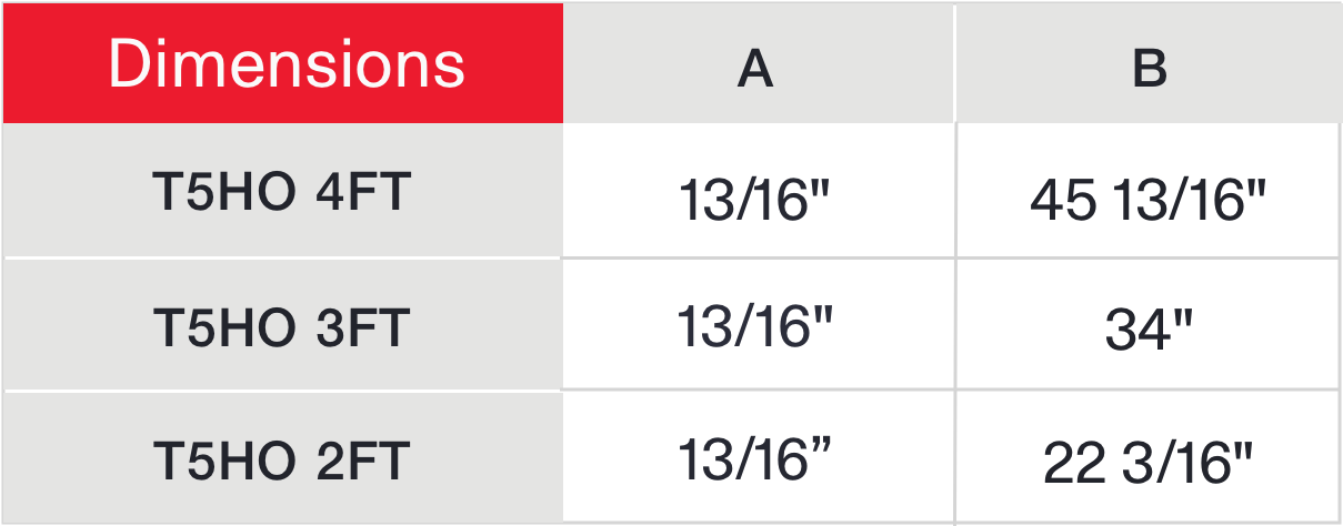 Approximately 50% more energy efficient when compared to Fluorescent T5 lamps.