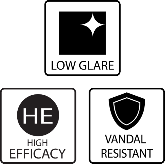 The VAN17 boasts a square perimeter of LEDs that results in a wider, more evenly distributed output and eliminates glare. It’s also vandal resistant and has an ultra-high efficacy of up to 157 lm/W.