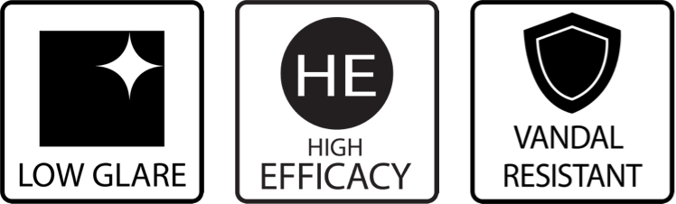 The VAN17 boasts a square perimeter of LEDs that results in a wider, more evenly distributed output and eliminates glare. It’s also vandal resistant and has an ultra-high efficacy of up to 157 lm/W.