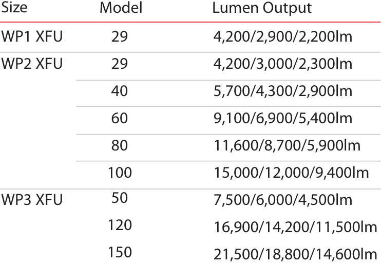 With a classic, prismatic glass design, the WP123 XFU comes in three sizes that cover the footprint of most outdated metal halide wall packs. With 8 different lumen packages to choose from, it's easy to find exactly what you need.
