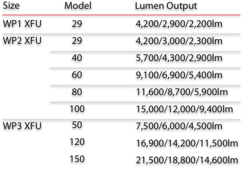 With a classic, prismatic glass design, the WP123 XFU comes in three sizes that cover the footprint of most outdated metal halide wall packs. With 8 different lumen packages to choose from, it's easy to find exactly what you need.