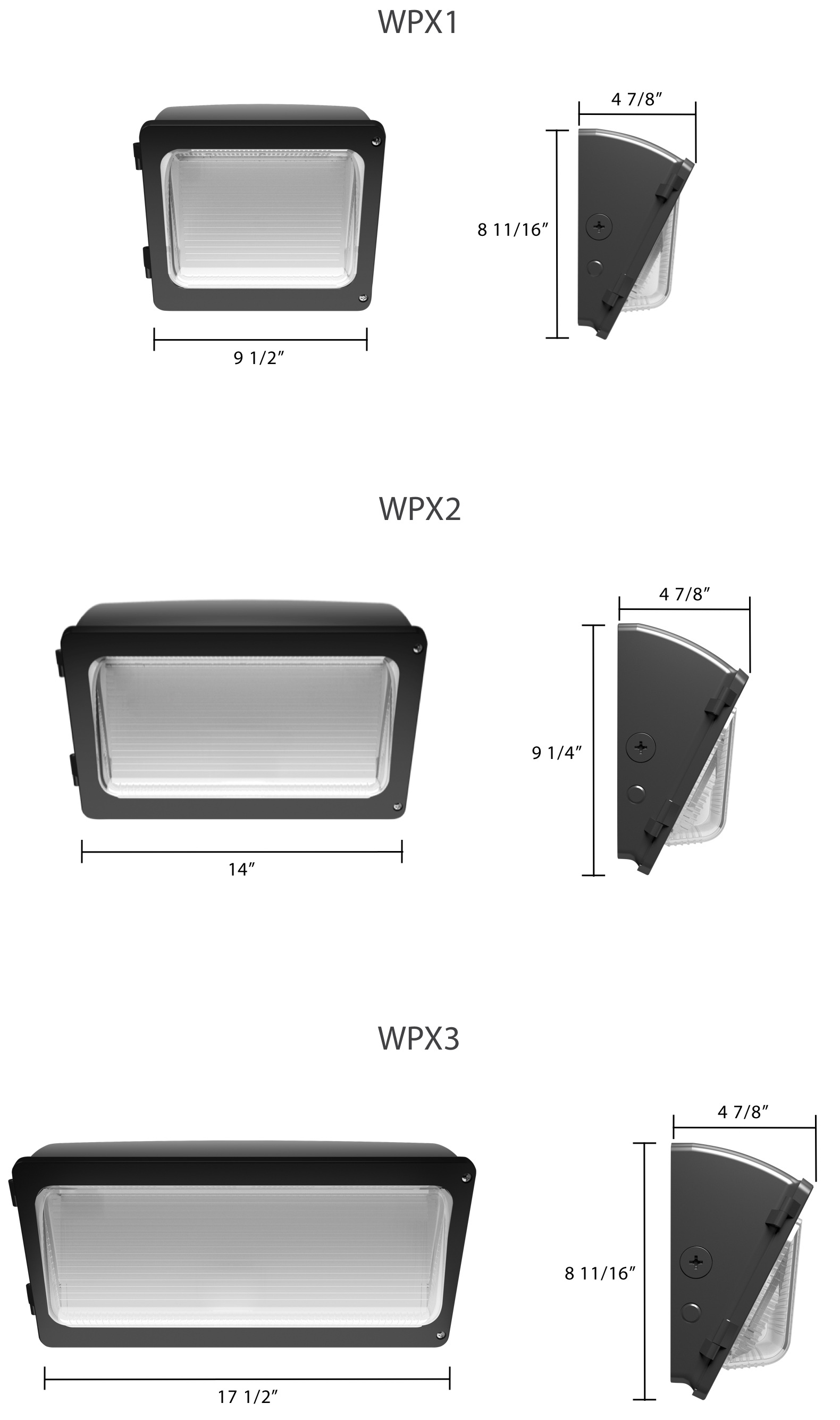 With 3 available sizes, the WPX series was designed to replace many of the old HID and fluorescent wall packs…right down to having the same footprint, which allows for a quick, simple, seamless upgrade—no paint touch-ups needed!
