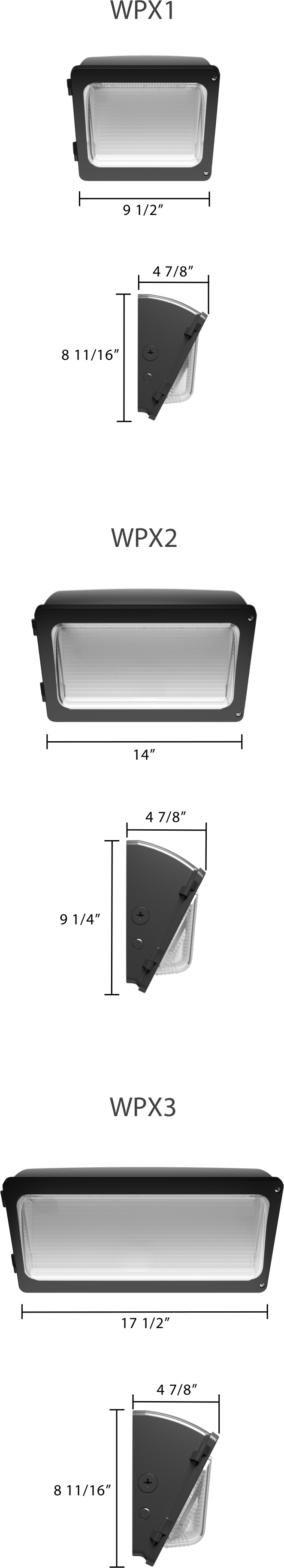 With 3 available sizes, the WPX series was designed to replace many of the old HID and fluorescent wall packs…right down to having the same footprint, which allows for a quick, simple, seamless upgrade—no paint touch-ups needed!