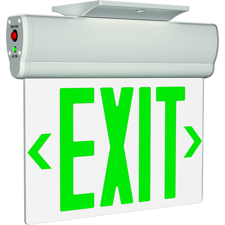 These edge-lit exit signs provide a high-end aesthetic while still being economical. The exit sign panel tilts 0-180°, fitting many moutnting orientations, and comes with surface and recessed mounting hardware in the box.