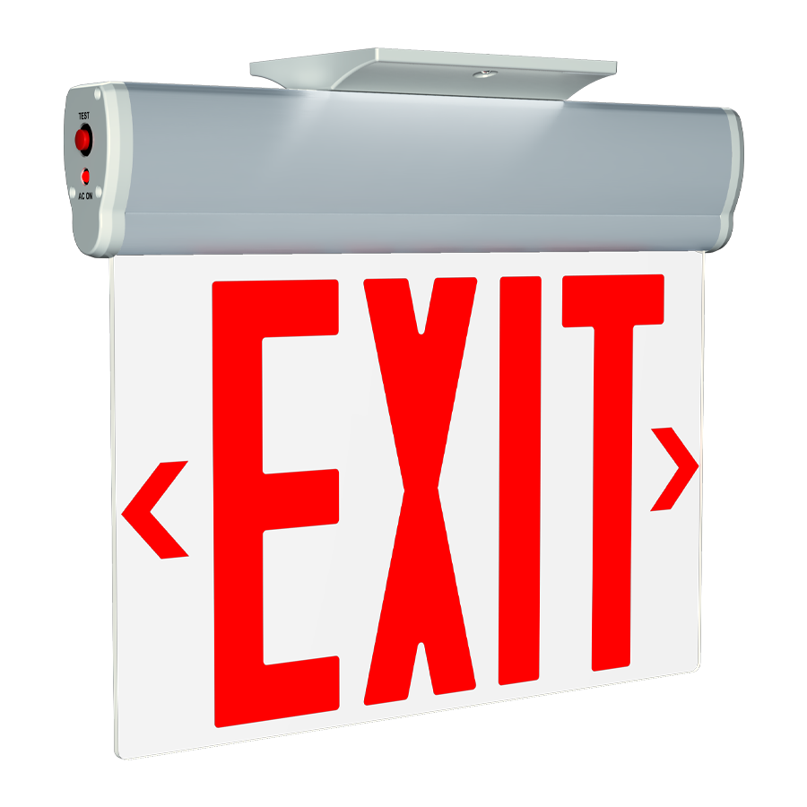 These edge-lit exit signs provide a high-end aesthetic while still being economical. The exit sign panel tilts 0-180°, fitting many moutnting orientations, and comes with surface and recessed mounting hardware in the box.