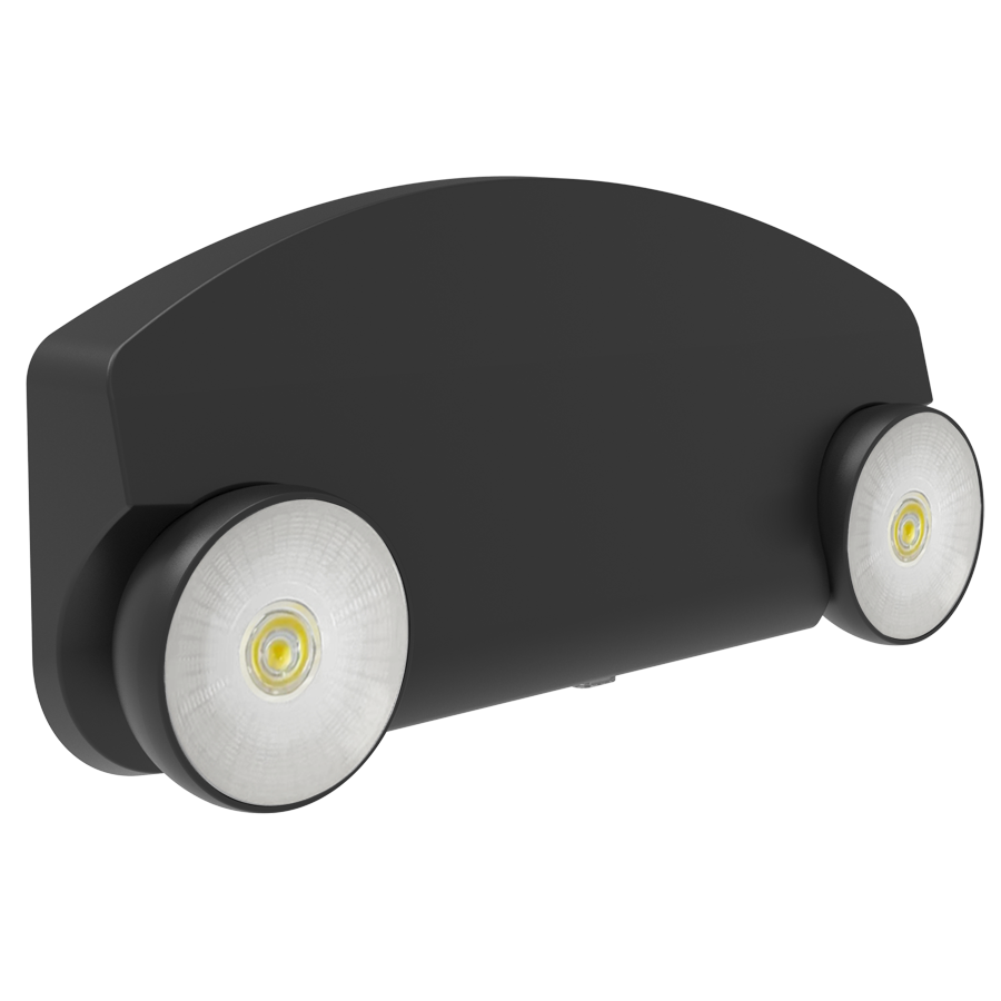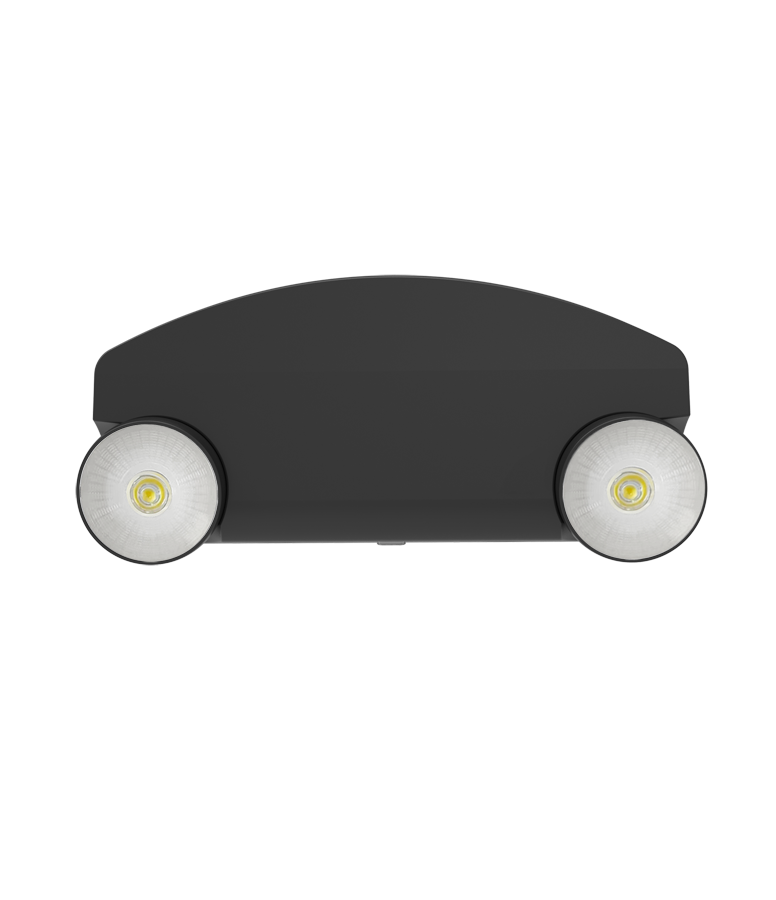 Ultra-economy emergency unit low profile, thermoplastic dual lamp head emergency unit. Available in white or black finishes with round lamp heads.