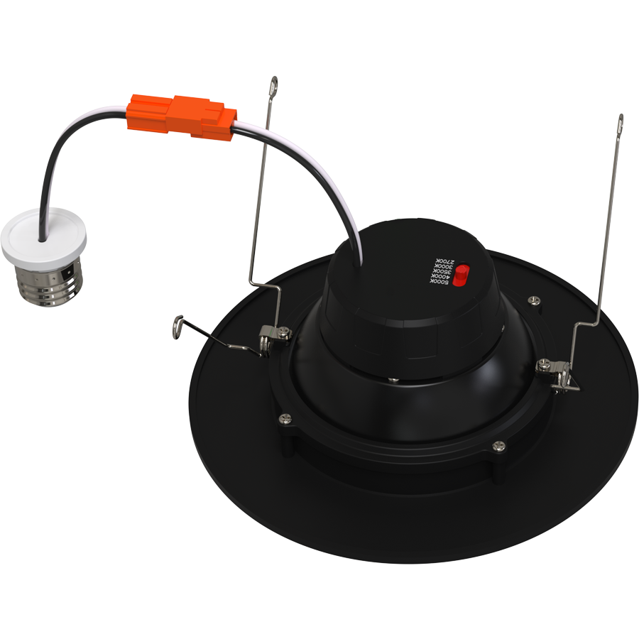 Contractor-grade retrofit gimbals offered with up to 5 field selectable color temperatures available in white & black finish.