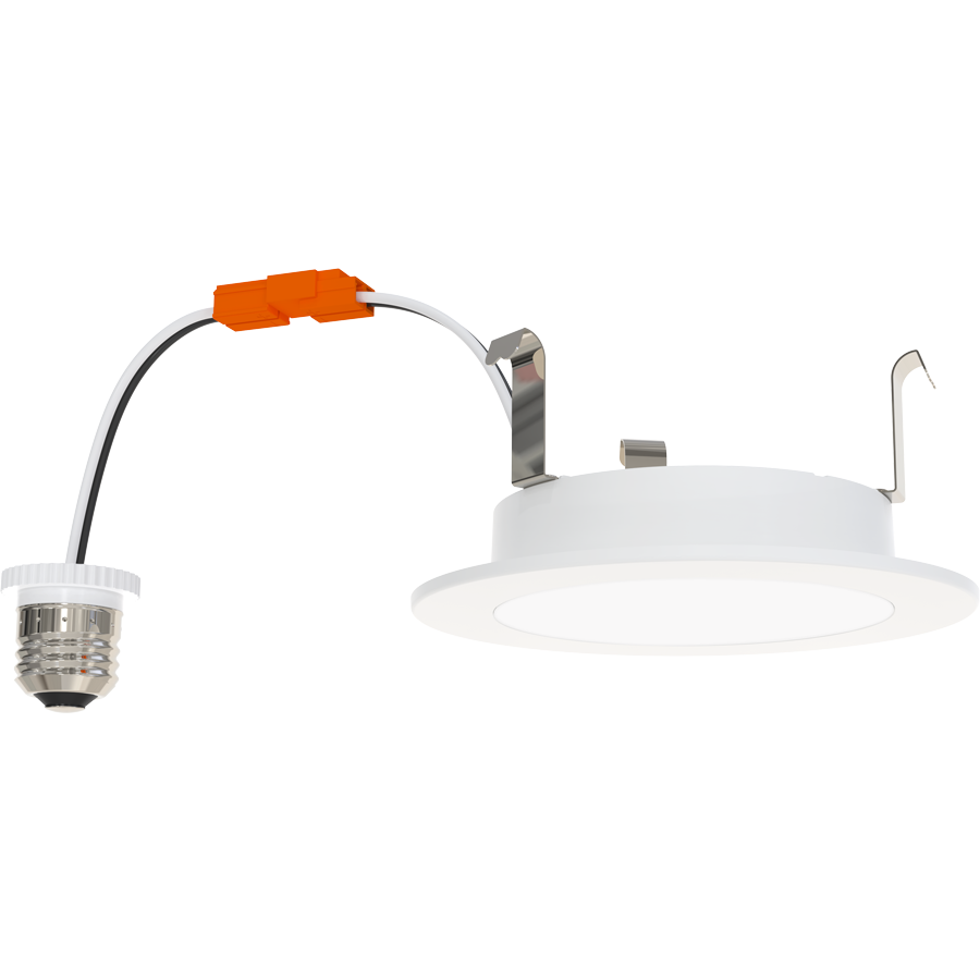 Looks like a wafer-style downlight from below the ceiling but installs into existing recessed housings.